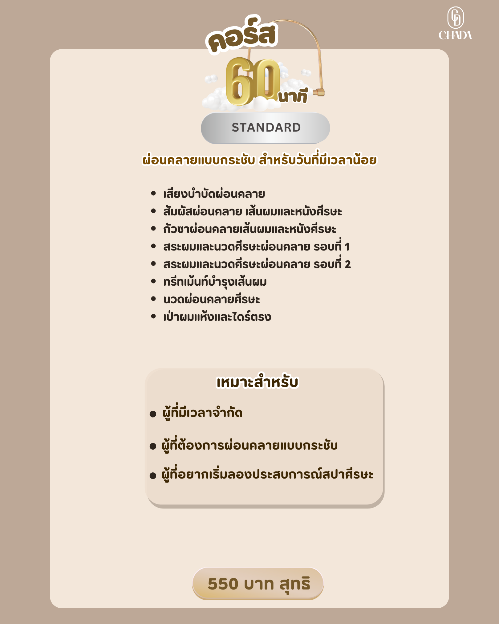 ชื่อธุรกิจ: Chada Sleep Salon (ชาดา สลีป ซาลอน)